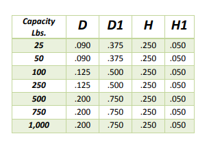 Load Cell Central's VLPA low profile miniature load cell is designed to measure load ranges from 25 to 1,000 lbs. With subminiature dimensions, including diameters from .375" to 0.75" and height of only 0.25", these small load cell units are easily incorporated into systems having limited space.