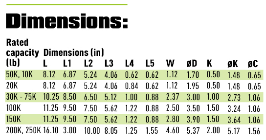 5K, 10K, 20K, 30K, 40K, 50K, 60K, 75K, 100K, 150K, 200K, 250K LB.